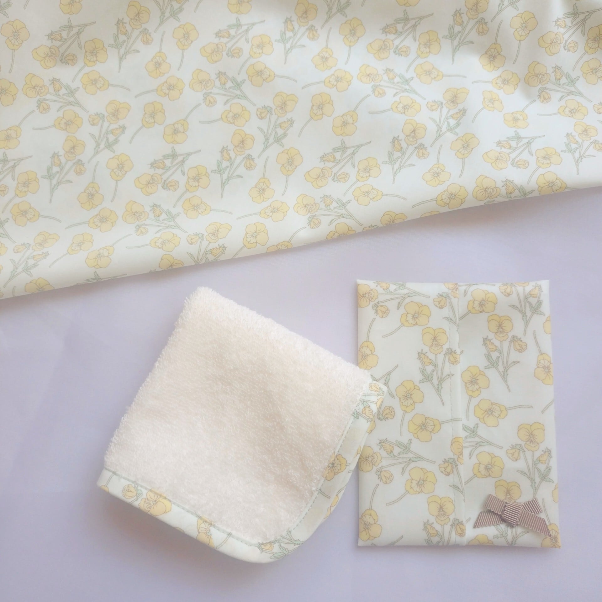 《縁取りリバティのタオルハンカチ&プチリボンリバティポケティのセット》